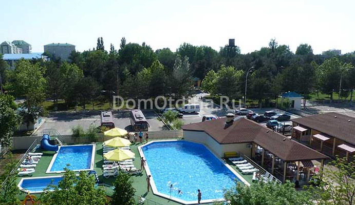 Территория пансиона «Южный Парус» охраняемая, оборудованная, уютная. На территории имеется три бассейна. Летнее кафе (открытое и закрытое). Детская игровая площадка.