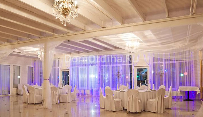Удаленность от городской суеты, изобилие зелени и мягкий свет создают соответствующую атмосферу. Здесь Вы также сможете провести любое торжество – свадебный банкет, юбилей, день рождения, корпоративную вечеринку и многие другие события! Для молодоженов действует специальный свадебный пакет услуг. При заказе свадебного торжества в ресторане – номер для молодоженов в отеле предоставляется бесплатно.