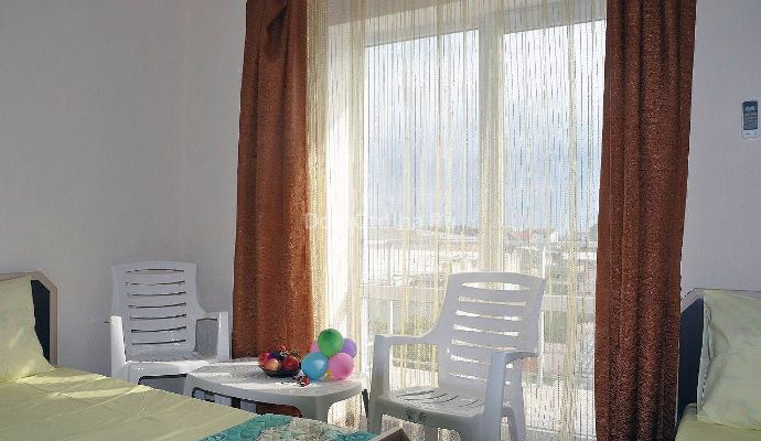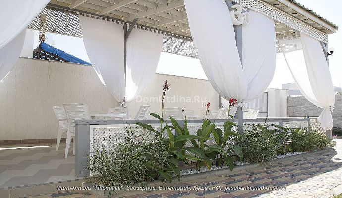 Отель расположен таким образом, что самые палящие и жаркие лучи солнца не проникают в окна. На территории есть летняя палатка, где можно покушать и посидеть теплым вечером. Каждый номер отеля оснащен холодильником, телевизором, wi-fi, шкафом, тумбочкой, санузлом, балконом или мини-террасой. В номерах есть кондиционеры или вентиляторы. ------------------------------------------------------------------------------------------------------------------------------- Мы также рады предложить вам: - трансфер (аэропорт Симферополь - отель - 1500-2000 рублей, комфортабельное авто - планируем организовать трехразового питания как в прошлом году - занятия хатха йогой - прокат велосипедов - дайвинг (обучение новичков, погружение с инструктором) - организацию экскурсий по западному побережью Крыма