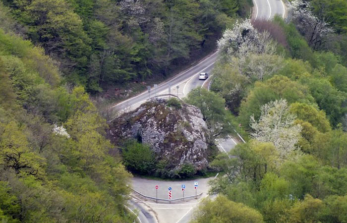 А завершить прогулку по окрестностям Каменномостского можно возле Казачьего камня, который находится в 3,5 км южнее поселка на дороге, ведущей в Гузерипль. Гигантская каменная глыба имеет высоту 35 м. Когда-то она откололась когда-то от массива Уна-Коз, скатилась вниз в долину и теперь лежит прямо посреди дороги.
