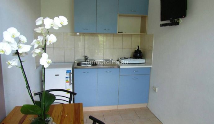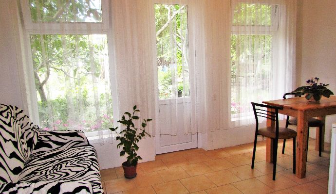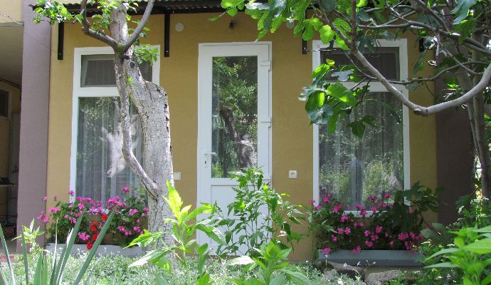 Наш пансионат окружен молодым садом. Тихий, зелёный дворик с беседками создаст для Вас уютную обстановку для комфортного отдыха и запомнится Вам и Вашим друзьям. Мы предлагаем 1 и 2-х комнатные номера класса "люкс". В каждом номере: кухня, ванная комната, спутниковое ТВ, кондиционер, отдельный балкон с тапчаном, Wi-Fi.