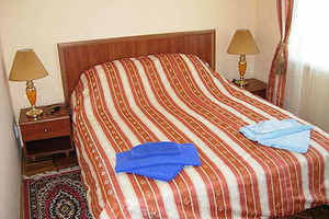 - Двухместные двухкомнатные номера люкс - спальня, гостиная, санузел (душ, умывальник, туалет), телевизор, холодильник, кондиционер, балкон (вид на горы);