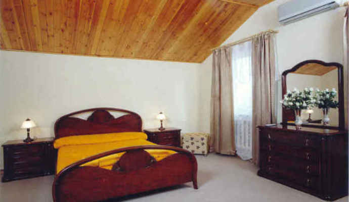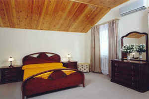 - Двухместные двухкомнатные апартаменты(100 м.кв.), в спальне двухспальная кровать, прикроватные тумбочки, настольные лампы, шкаф для одежды, комод с зеркалом, пуфик, сплит-система; в гостинной обеденный стол, четыре стула, диван, два кресла, шкаф для посуды, журнальный столик, большая ванная комната с окном. Телевизор, холодильник, телефон с городской связью и входящей междугородней линией.