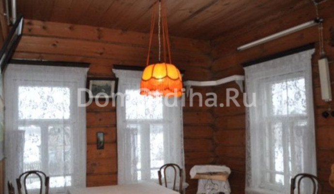 Настоящий большой дачный дом, богато убранный антикварной мебелью, бревенчатый, общая площадь 100м2, отапливаемая - 47м2, всего 7 комнат. Кухня 17м2, 3 отапливаемые комнаты 12м2, 12м2 и 6м2, 2 летние комнаты, прихожая, терраса. Вид из окон на реку. Сад с плодовыми деревьями и кустами. Небольшая банька.