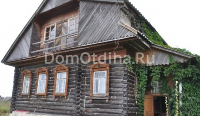 Большой дачный дом, бревенчатый, общая площадь 130м2, отапливаемая - 40м2. Кухня 17м2, большая спальня-гостиная 23м2, летняя комната 10м2, прихожая, терраса. Вид из окон на реку и луг. Сад с плодовыми деревьями и кустами. Собственный пруд.