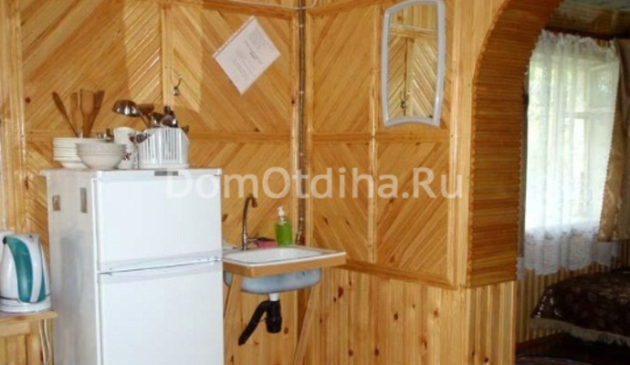Одноэтажный домик поделён на два номера. В каждом номере имеется спальная комната и кухня. В одной половине домика имеется две кровати (односпальная и двухспальная кровати), а в другой две кровати двухспальные и кресло-кровать. Имеется телевизор со спутниковым телевидением в каждом номере. В каждой кухне имеется холодильник, плита, электрический чайник, и вся посуда для приготовления пищи. На кухне холодное водоснабжение.