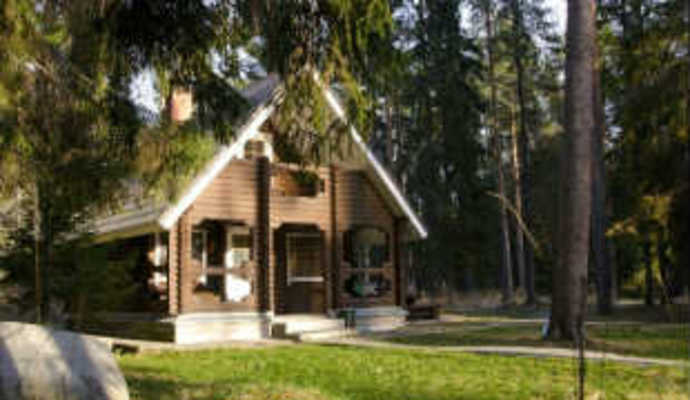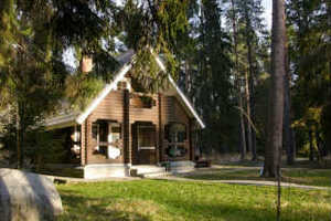 На базе отдыха Эдем отдыхающие размещаются в коттеджах финского типа (высокий первый этаж, на второй этаж - винтовая лестница, внутри помещения нет отдельных комнат). В гостиной - коттедж с камином. В одном коттедже размещаются до 4-х человек.