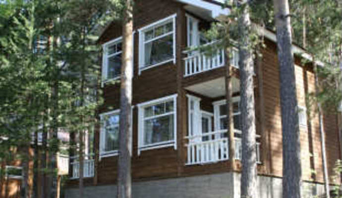 Корпус № 4 Ёлочка (двухэтажный дом из бруса на 42 места. Находится в 80 м от озера, в холодное время года отапливается котельной - в комнатах батареи, на первом этаже веранда 35 кв. м.):