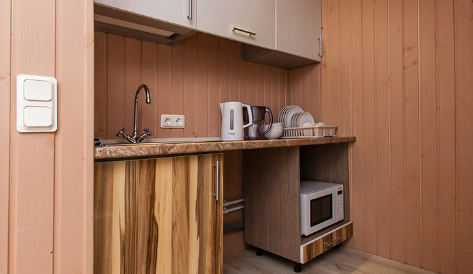 Коттеджи класса «ЛЮКС» расположены на самом берегу озера и рассчитаны на максимальное количество — 6 человек. Каждый коттедж оборудован мебелью, бытовой техникой (плита, холодильник, микроволновка, эл.чайник), кухонными принадлежностями, постельными принадлежностями, исходя из количества проживающих.
