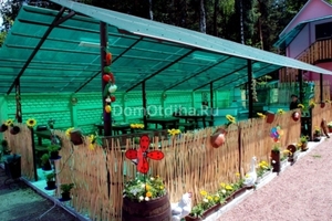 На территории есть прекрасная открытая летняя площадка, русская баня, рассчитанная на 6-8 человек, комната отдыха, джакузи с годромассажем.