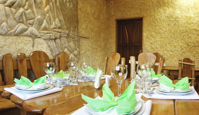 Отель рассчитан на 20-22 человека. К услугам гостей - 9 однокомнатных (двухместных) люкса и 1 двухкомнатный (четырехместный) люкс, гостеприимный зал, комната отдыха зал с камином, летняя терраса, сувенирная лавочка.
