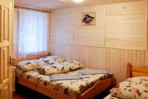 В коттедже на цокольном этаже расположена кухня – столовая. На первом этаже уютная гостиная с камином, четырех местный номер и удобства. На втором этаже есть два номера – 2-х и 4-х местный, удобства и выход на балкон.