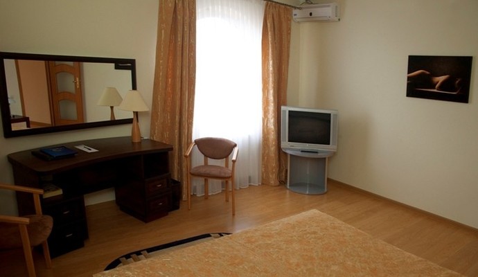 Комплекс "Галактика" располагает 54 комфортными номерами категорий Стандарт, Полулюкс и Люкс. В каждом номере: телефон, телевизор, холодильник, спутниковое ТВ, ванна и душ (в зависимости от категории номера), фен. В некоторых номерах – кондиционеры. Предусмотрены номера для курящих и некурящих. Кроме того, к услугам гостей просторная терраса и две оранжереи.