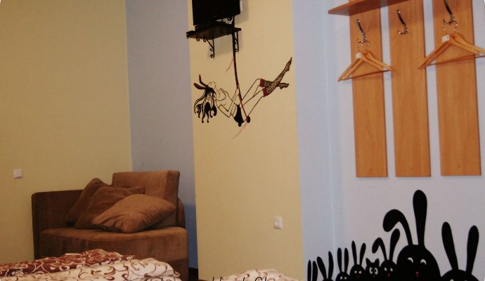 В номерах имеется кровати, телевизор, тумбочки, вешалка, доступ в Интернет.