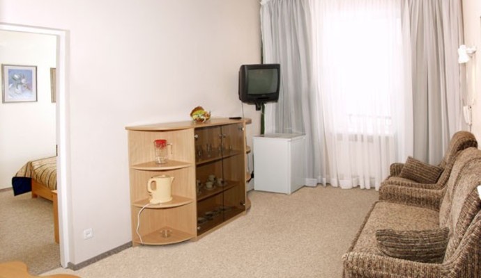 Спальный корпус насчитывает 260 номеров, различного типа: двухместные, одноместные, полулюксы, двухкомнатные и один апартамент. Двухэтажный номер апартамент состоит из шести комнат (2 спальни, гостиная, кабинет, бильярдная, тренажерный зал), двух санузлов и мини-сауны. Все комнаты спального корпуса оборудованы телевизорами, холодильниками, телефонами, санузлами. В номерах улучшенного типа - дополнительно чайник, утюг. Вода холодная и горячая подается круглосуточно. Из номеров открывается прекрасный вид на горы Карпаты и озеро.