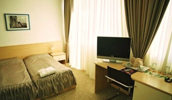 Двухместный: 1-комнатный номер с двуспальной (ширина 1,8 м) или двумя раздельными кроватями (ширина 0,9 м). Рассчитан на размещение до 3-х человек. Дополнительное место – раскладушка. Есть номера с балконом. Площадь номера 25 кв.м.