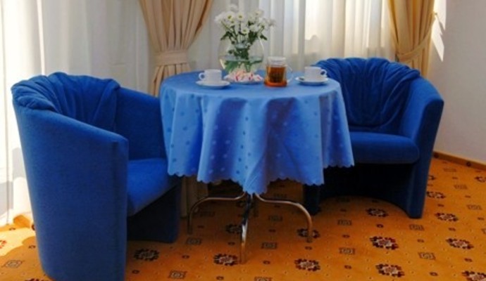 Полулюкс с диваном: 1-комнатный номер с двуспальной кроватью (ширина 2,4 м) и диваном. Рассчитан на размещение до 3-х человек. Дополнительное место – диван. Площадь номера 30 кв.м.