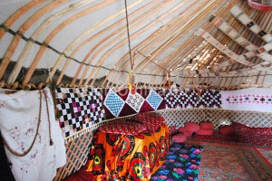 Неподалеку от развалин городища Аяз-Кала (IV-II вв до н.э.) расположен одноименный юртовый лагерь. Как известно юрта – это традиционное переносное жилище среднеазиатских кочевников, которое степнякам можно было собрать и разобрать в любом месте, чтобы заночевать.
