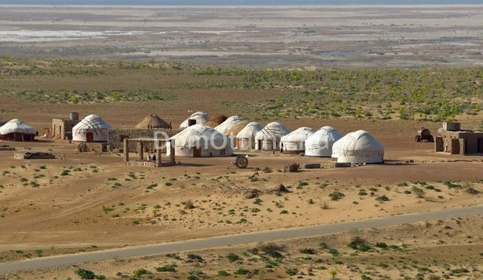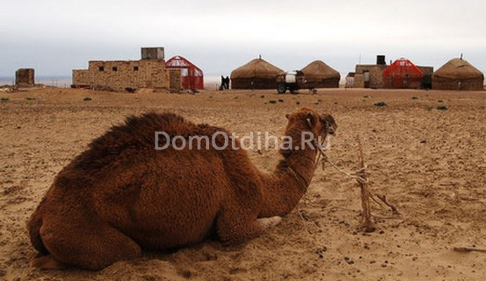 Несколько таких юрт вместимостью от 2 (5-канатные юрты) до 20 человек (15-канатные юрты) разбито в весьма живописном месте. Лагерь находится в дикой степи, до ближайшего городка Бустон – 30 километров, до Ургенча, где расположен международный аэропорт и железнодорожный вокзал, – 80 км, а до Хивы – города-музея под открытым небом – 110 км. С одной стороны виднеются хребты Султануаиздага, а с другой находится озеро Аяз-Куль. Раньше приехать сюда можно было из Хивы и Ургенча через Берунийский понтонный мост через реку Амударья. А в этом году рядом с понтонным мостом был построен новый, более удобный, по которому уже ездят туристические автобусы.