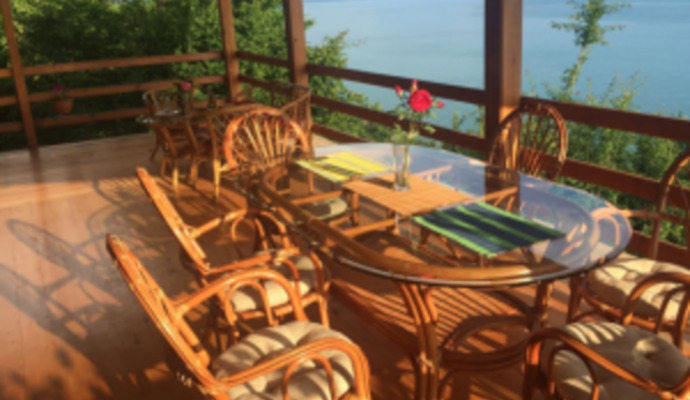 Приглашаем отдохнуть в гостевом коттедже в поселке Аныхапста (гора Гребешок, Абхазия) в 14 километрах от границы с Россией (Псоу). Дом расположен в саду с фруктовыми деревьями: яблоки, виноград, оливки, мандарины, апельсины и т.д. площадью 50 соток, а также имеется огород и русская баня (на дровах). В хозяйстве имеются ульи, куры, гуси и т.д. Есть возможность приобретения козьего и коровьего молока, вина и чачи. Дом расположен на крутом склоне, 1 этаж с панорамным видом на море 40 кв.м.,кондиционер, санузел, душевая кабина, горячая и холодная вода. 2 2-спальных дивана и 2 раскладных кресла, телевизор, комод и плательный шкаф. Второй этаж VIP зона, гостиная и спальня, в спальне 2-местная кровать, очень большой угловой диван, телевизор, санузел, душевая кабина, горячая и холодная вода. Веранда, площадью 50 кв. м. с обзором на море около 180 градусов, дорогая мебель из ротанга. Имеется возможность доставки на деревенский рынок 2 раза в неделю для приобретения продуктов, а также заказ на приготовление пищи. На территории имеется для приготовления пищи стол, электроплита, газ. До моря по тропинке не более 15 минут пешком. Чистейший пляж, прозрачная вода и небольшое количество отдыхающих. Рекомендуем для отдыха с детьми.